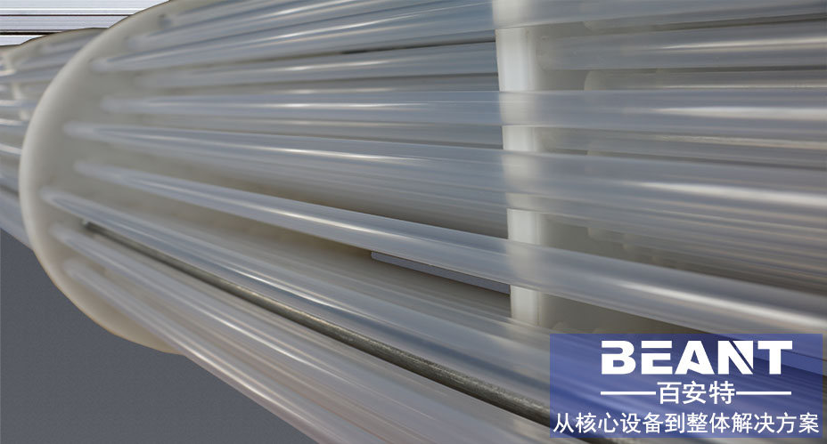 由于管殼式換熱器采用的是薄壁管,壁厚僅有0.6mm~1mm,所以克服了氟塑料導熱系數低的缺點,使其總傳熱系數可達150-300(W/m2K),熱交換率高達95%。